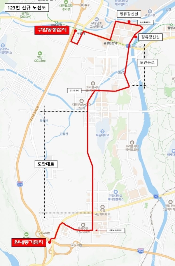 이번 노선 신설은 관저동, 도안동, 온천동, 구암역 일대를 잇는