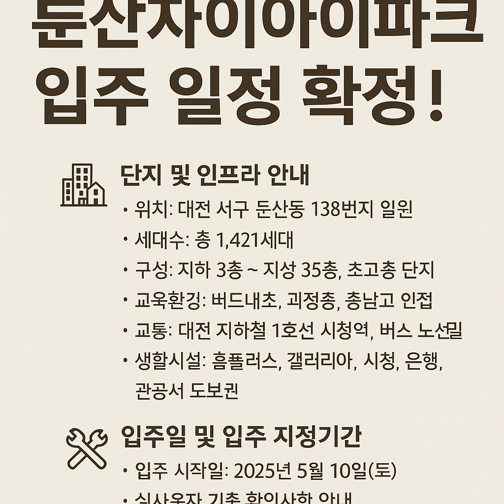 🎉 둔산자이아이파크 입주 일정 확정! 2025년 6월 27일부터 본격 입주 시작